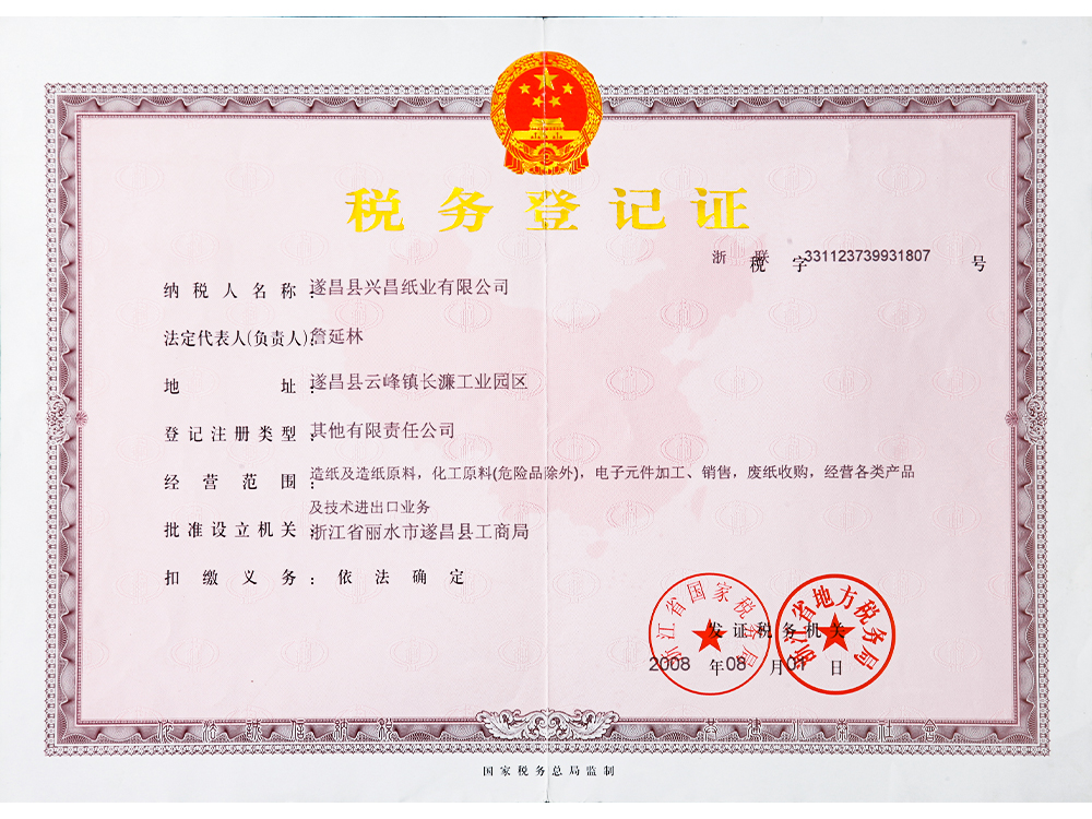 Tax registration certificate